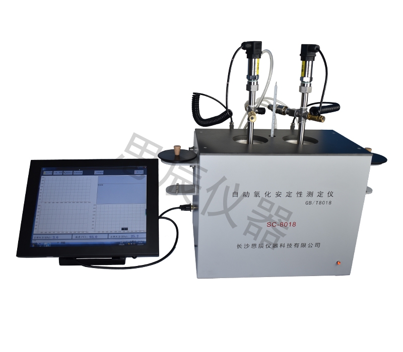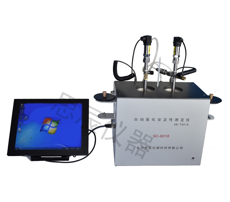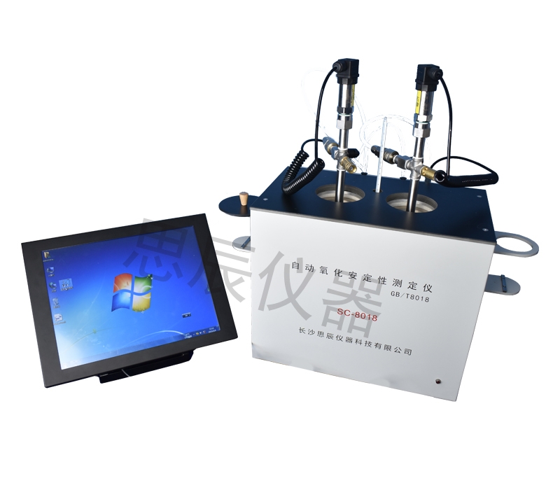 本儀器是根據(jù)中華人民共和國標(biāo)準(zhǔn)GB/T8018《汽油氧化安定性測定法(誘導(dǎo)期法)》所規(guī)定的要求設(shè)計制造,由計算機、控制檢測系統(tǒng)、金屬浴控制系統(tǒng)、氧彈支架、氣體回路等部分構(gòu)成。計算機控制是整個系統(tǒng)的核心,采集下位機數(shù)據(jù),進(jìn)行顯示存儲、參數(shù)校正等。氣體回路由氧氣管路快速接頭、充氧/放氧電磁閥、左右充放氧手控針型閥、左右氧彈(含壓力傳感器)及其快速接頭管路等部分組成。氧彈支架在儀器的兩側(cè),裝有定位槽,可在氧彈支架上方便地裝卸氧彈。