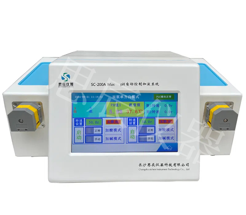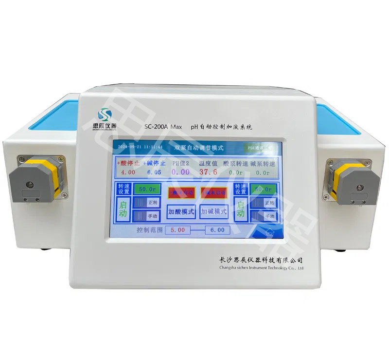 本系統(tǒng)是長(zhǎng)沙思辰儀器研發(fā)團(tuán)隊(duì)最新研制開(kāi)發(fā)的第三代高精度pH自動(dòng)控制系統(tǒng),為高等院校、科研院所實(shí)驗(yàn)室,中外研發(fā)企業(yè)及研發(fā)生產(chǎn)等部門(mén)精心設(shè)計(jì)制造的,并且擁有完全自主的知識(shí)產(chǎn)權(quán)。獲得了國(guó)家一項(xiàng)發(fā)明專(zhuān)利【ZL201410349779.8】及多項(xiàng)實(shí)用新型專(zhuān)利【ZL201721373766.X】;【ZL 201420406067.0】;【ZL201420406055.8】。整機(jī)采用PLC控制,并與定制的蠕動(dòng)泵聯(lián)機(jī)進(jìn)行加酸或加堿來(lái)自動(dòng)調(diào)節(jié)容器中溶液pH的預(yù)設(shè)值。是催化、制藥、化工、電鍍、生化、生物發(fā)酵、植物提取物車(chē)間,科院院所等實(shí)驗(yàn)室或生產(chǎn)中小試場(chǎng)所理想的pH監(jiān)測(cè)自動(dòng)控制系統(tǒng)。