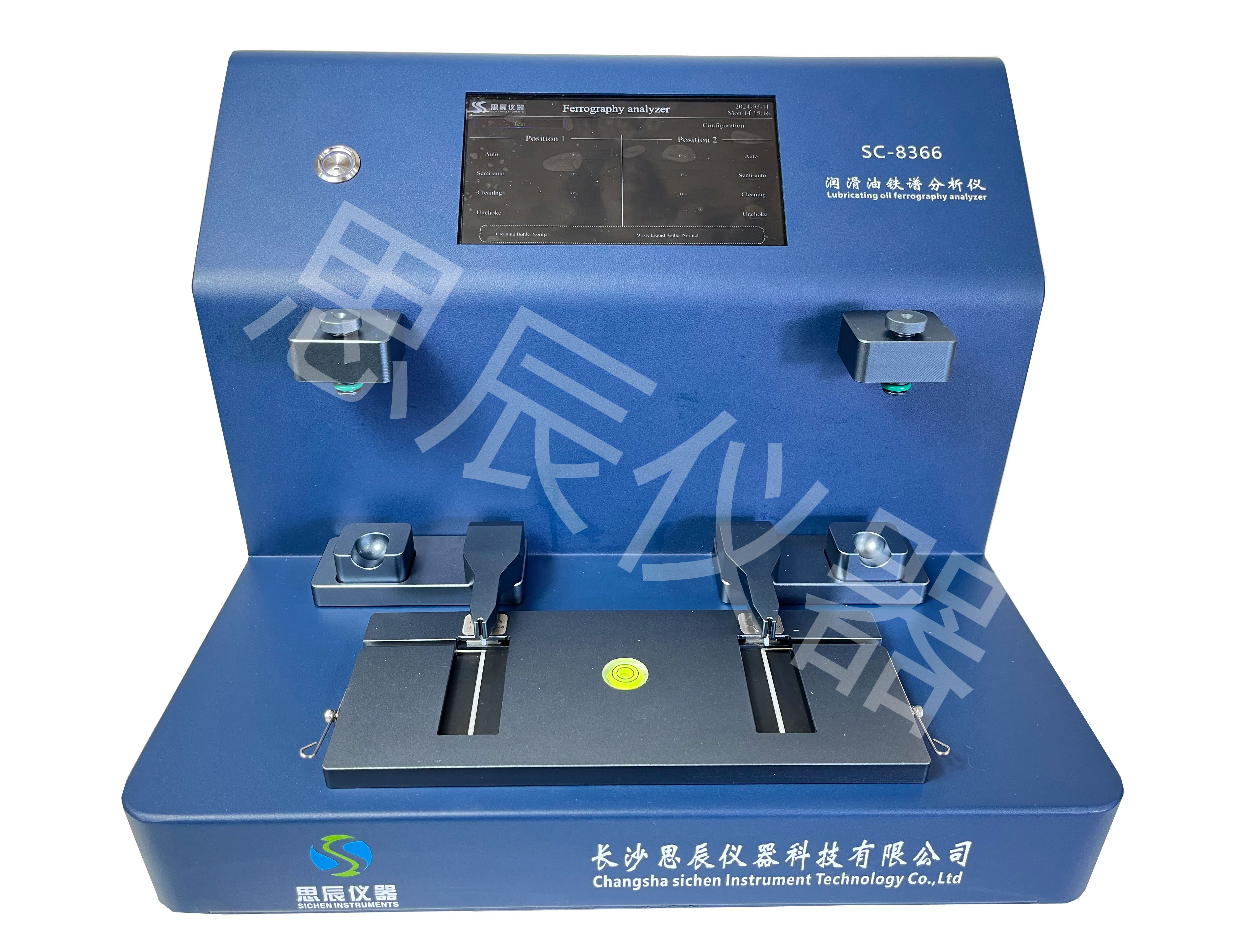 2、 鐵譜基片傾角有級可調(diào),以滿足不同粒度磨粒油樣選用。支臂有定位裝置,可調(diào)整輸油管到鐵譜基片的距離,使油樣入口處狀態(tài)保持一致,提高了鐵譜片制作的再現(xiàn)性。