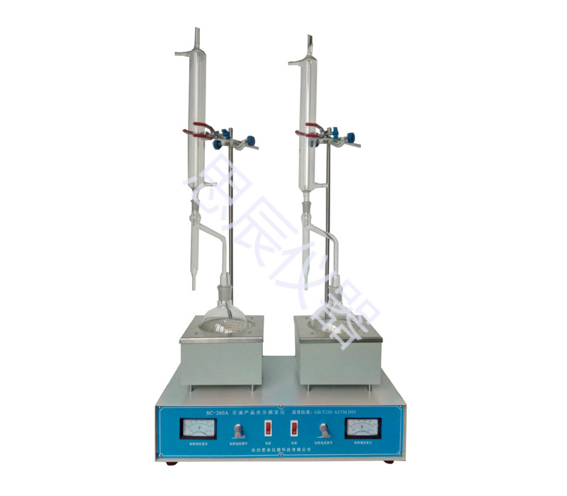 本儀器是根據(jù)中華人民共和國最新標(biāo)準(zhǔn) GB/T260-2016《石油產(chǎn)品水含量的測(cè)定法 蒸餾法》規(guī)定的要求設(shè)計(jì)制造的,適用于按 GB/T 260標(biāo)準(zhǔn)規(guī)定的試驗(yàn)方法測(cè)定石油產(chǎn)品中的水分含量。本儀器也適用于按 GB/T512《潤滑脂水分測(cè)定法》的標(biāo)準(zhǔn)規(guī)定的試驗(yàn)方法測(cè)定潤滑脂中的水分含量。本儀器是雙聯(lián)式結(jié)構(gòu),可同時(shí)進(jìn)行兩只試樣的試驗(yàn)。